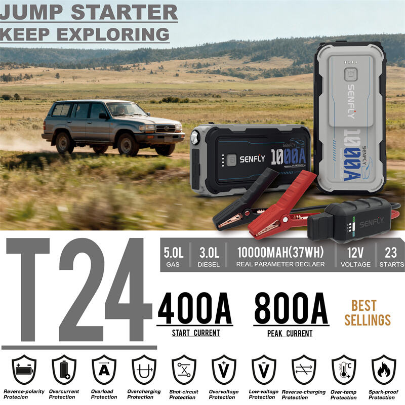 SENFLY 2026 New Released T24 Car Jump Starter 800A 12V Portable Battery Booster Up to 5.0L Gas Engine.