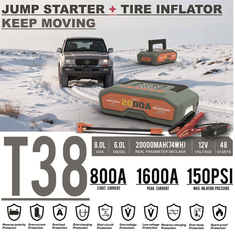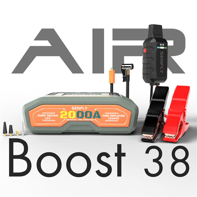 SENFLY Boost T38: SENFLY T38 2-in-1 Car Battery Jump Starter Air Compressor 1600A 12V Portable Battery Booster (Up to 8.0L Gas/6.0L Diesel) 150PSI Tire Inflator with Auto Stop